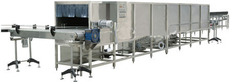 本机用于耐热聚酯瓶茶饮料、热灌装、聚酯瓶碳酸饮料罐装生产线,可使高温灌装的茶饮料降温至36-40℃,低温灌装的碳酸饮料升温至36-40℃,去除聚酯瓶表面的凝结水,保持瓶身干燥清洁,便于瓶装线后的贴标、装箱作业。产量5000-20000瓶/小时,喷淋时间约15-20分钟。